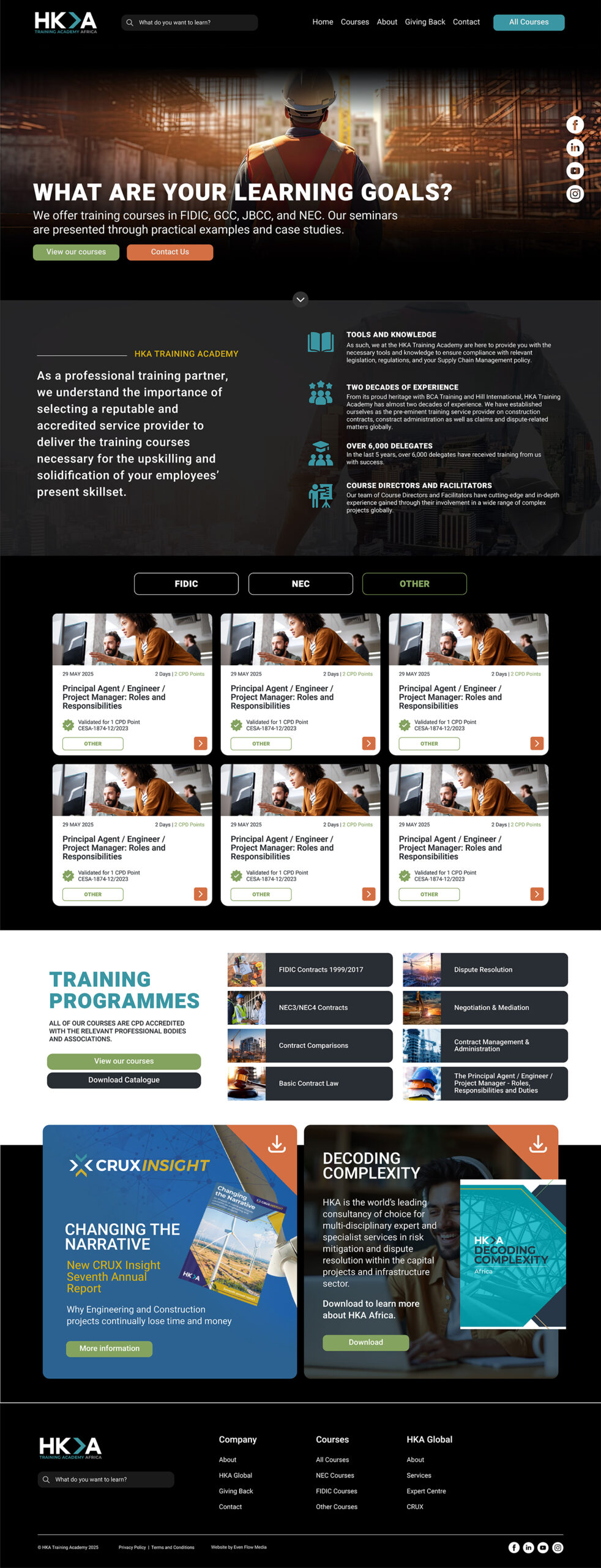 HKA Training Academy offers online training courses in FIDIC, GCC, JBCC, and NEC.